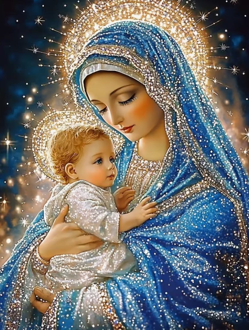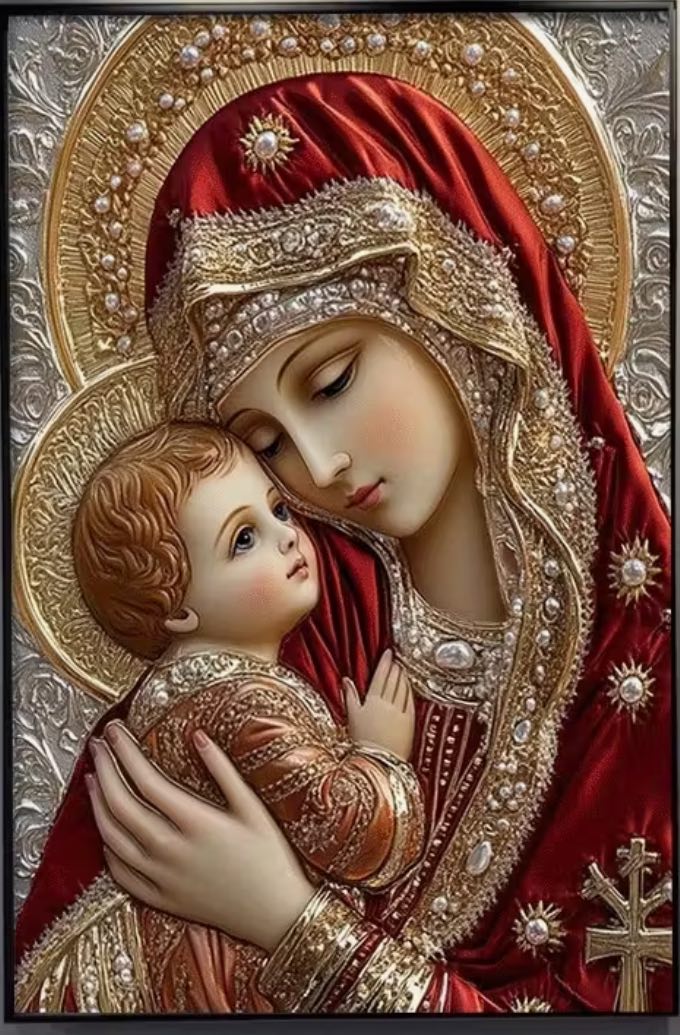 Алмазна мозаїка «Небесна цариця з немовлям», 40*50см, на підрамнику