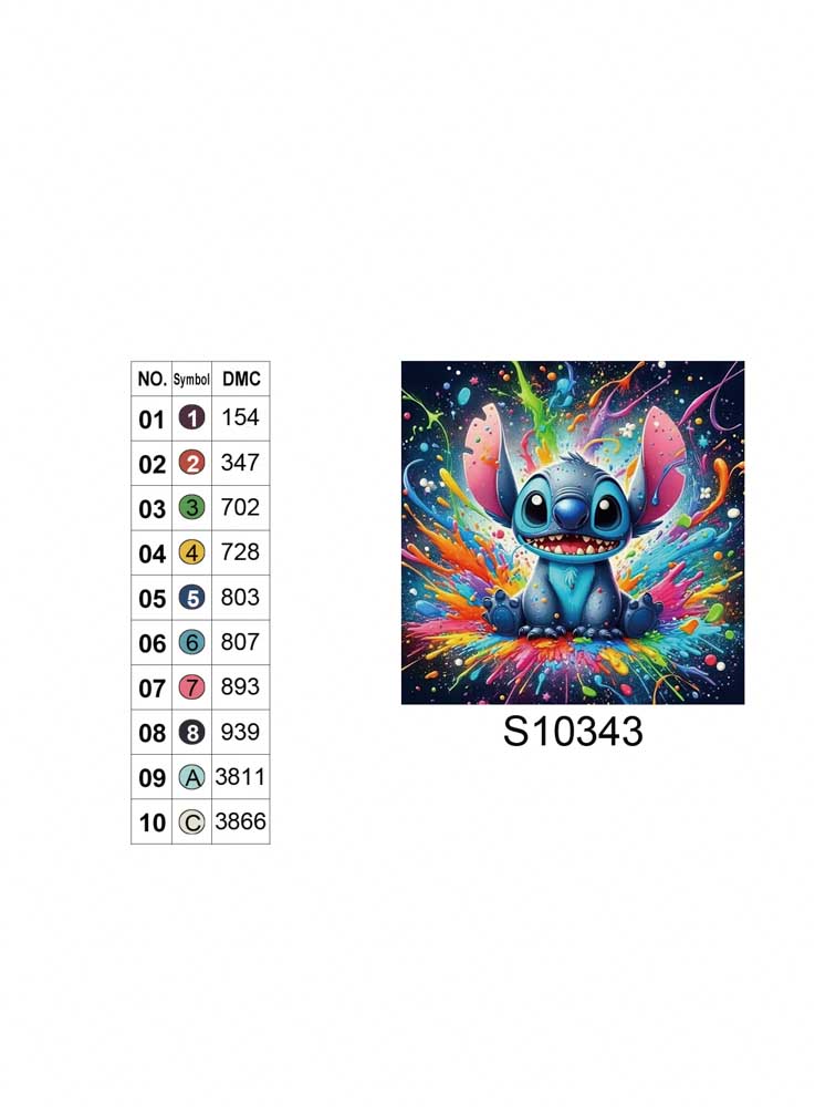 Алмазна мозаїка «Стіч в райдужних фарбах», 20*20см, на рамці
