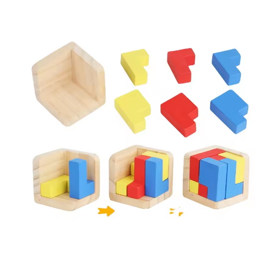 Дерев'яна іграшка 3D тетріс, логічна гра, куб-головоломка