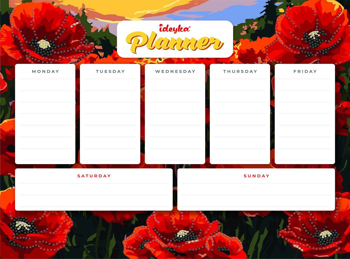 Планер на магнитной основе с алмазной мозаикой Маки 32х40см