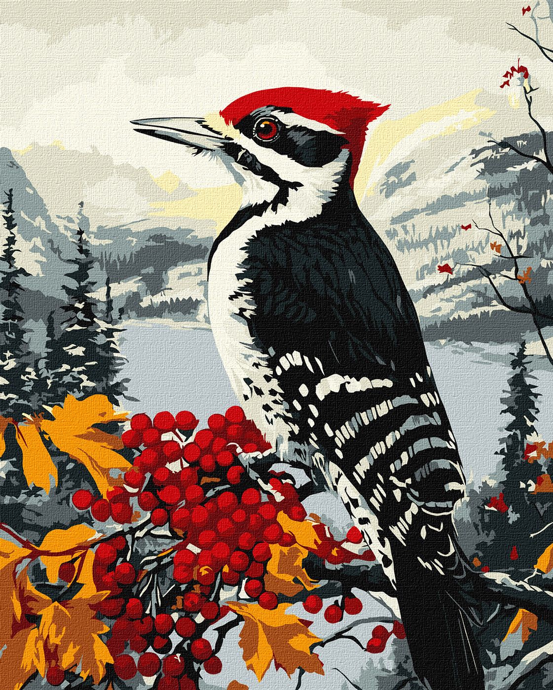 Картина по номерам «Дятел на ветке» 40х50см