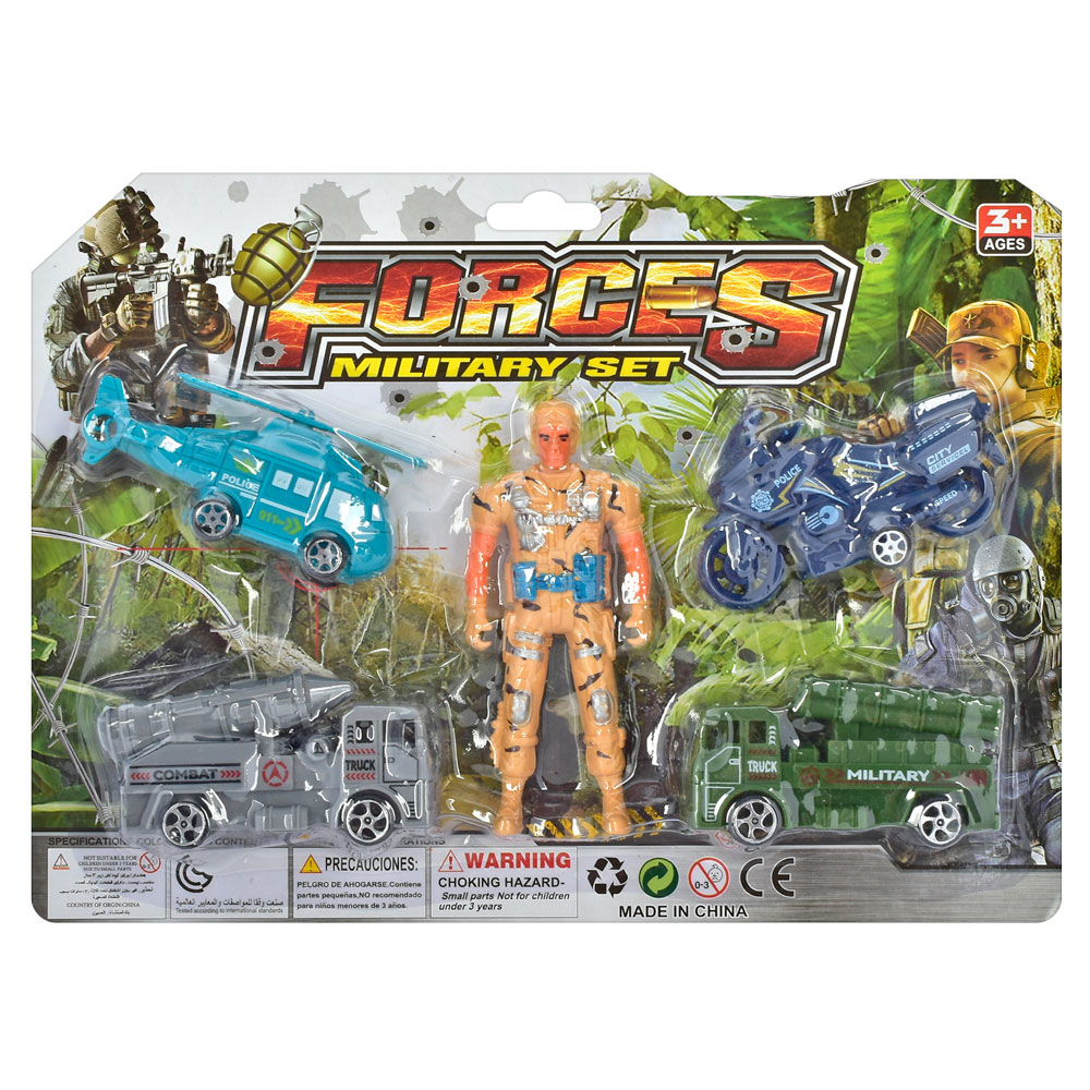 Набір з транспортом військовий, літак,човен, танк, гармата, солдат