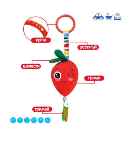 Іграшка м'яконабивна Брязкальце-підвіска з прорізувачем Полуниця