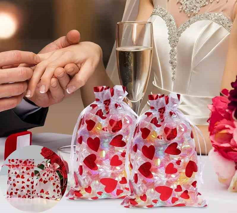 Мішечки з органзи для подарунків, 8*10см, з сердечками, 50шт. — практичне та водночас ніжне рішення для стильного пакування невеликих презентів. Напівпрозора органза з декоративним візерунком у вигляді сердечок виглядає святково й романтично, красиво підкреслюючи вміст. Мішечки ідеально підходять для пакування прикрас, сувенірів, цукерок, косметики, аксесуарів або подарунків для гостей. Легко затягуються шнурочками, забезпечуючи зручність у використанні.
