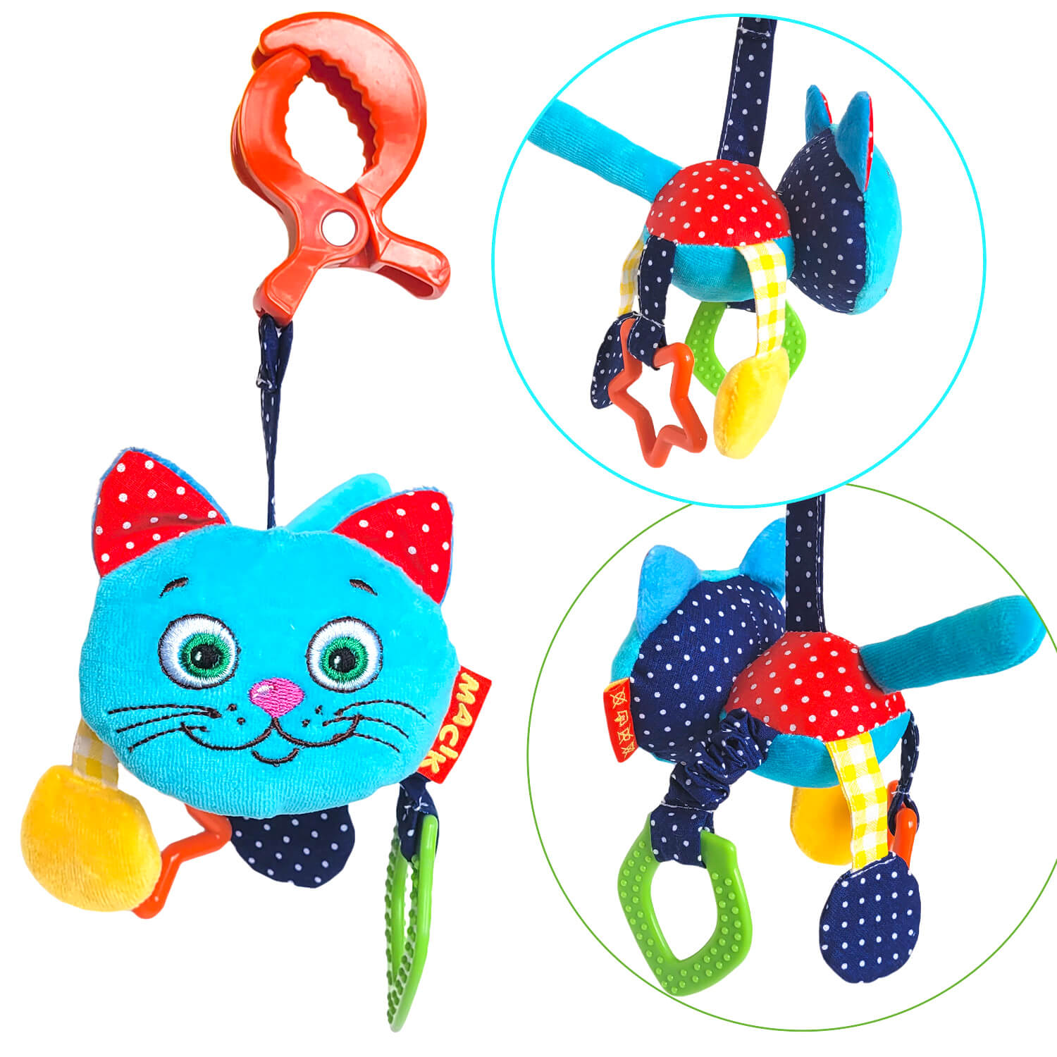 Вібро-підвіска «Ферма – Котик» — яскрава іграшка для немовлят із пищалкою, «гримілкою» та шелесткими лапками. Зірочка та рифлене кільце ніжно масажують ясна під час прорізування зубів, а потягнувши кільце, котик завібрує. Розвиває слух, зір, дрібну моторику, хапальний рефлекс і концентрацію уваги. Легко кріпиться на ліжечко, коляску, автокрісло, манеж або розвиваючий килимок.