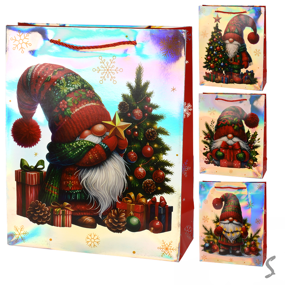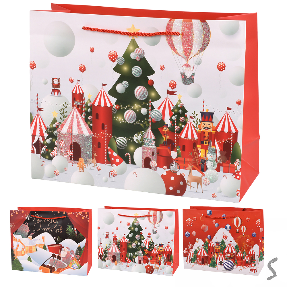 Пакет новорічний паперовий L «Merry Christmas» 31*42*12см, ЦІНА ЗА УП. 12ШТ