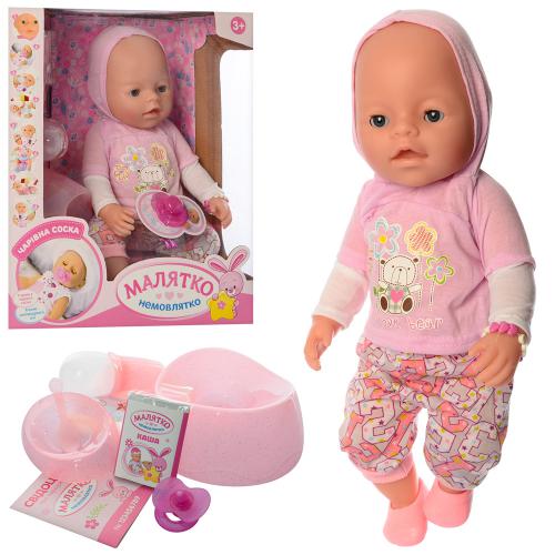 Пупс 42см, горшок, соска-магн, каша 4шт, бутылочка посуда, п