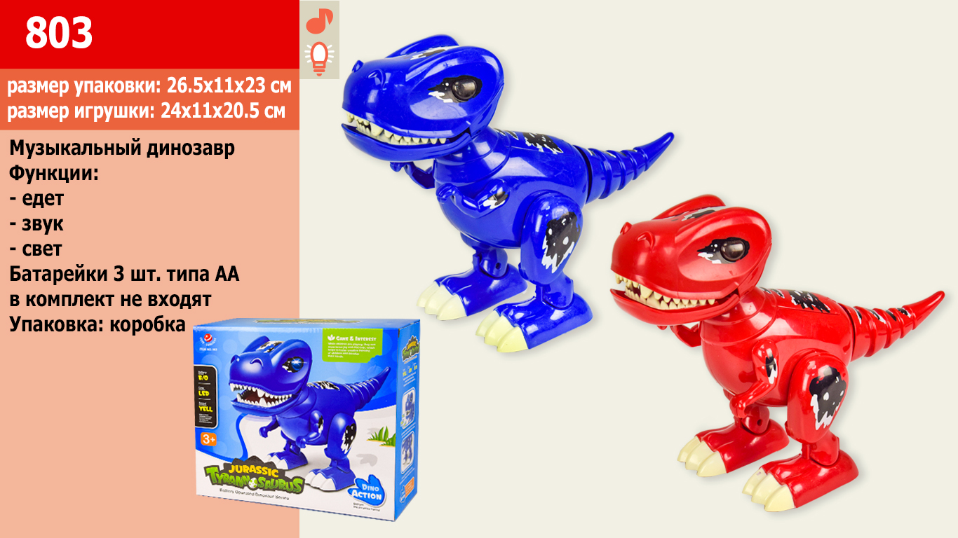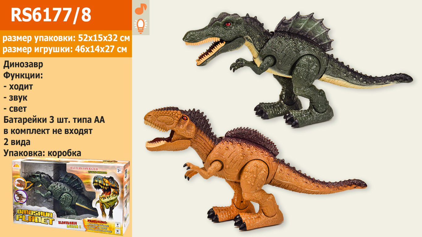 Интерактивное животное Динозавр, 2 вида, батар., звук, свет,
