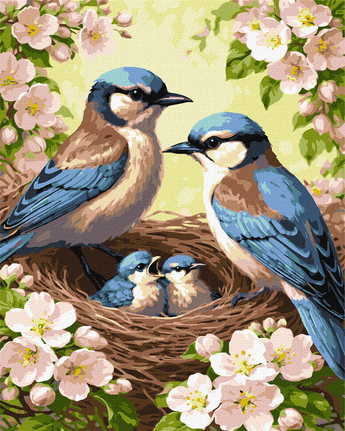 Картина по номерам «Семья синиц в цвете» 40*50см