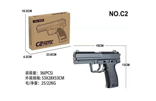 Пистолет металл, на пульках, 16см