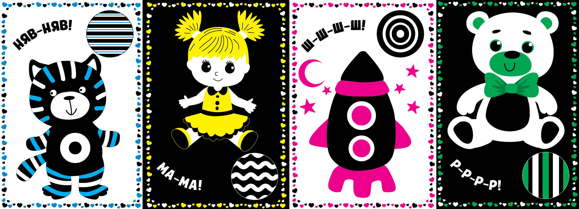 Книга «Контрастні картинки. Мої перші іграшки» створена спеціально для немовлят, які роблять перші кроки у пізнанні навколишнього світу. Великі чорно-білі ілюстрації з яскравими акцентними кольорами легко сприймаються малюком і зручно розглядати їх як у ліжечку, так і під час гри на килимку.Книжка містить наліпки, за допомогою яких можна доповнювати зображення, змінювати їх з часом або створювати власні картинки. Такі заняття роблять взаємодію з книгою ще цікавішою та різноманітнішою.Видання сприяє розвитку зору, формуванню навичок фокусування погляду й візуального відслідковування, а також допомагає розпочати знайомство з кольорами та транспортом у доступній для немовлят формі.