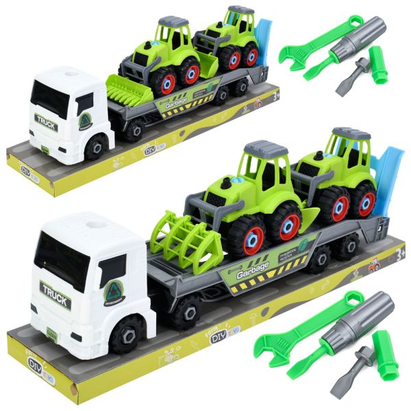 Конструктор на шурупах, трейлер 39см, будтехніка 2шт, викрутка, гайк.ключ